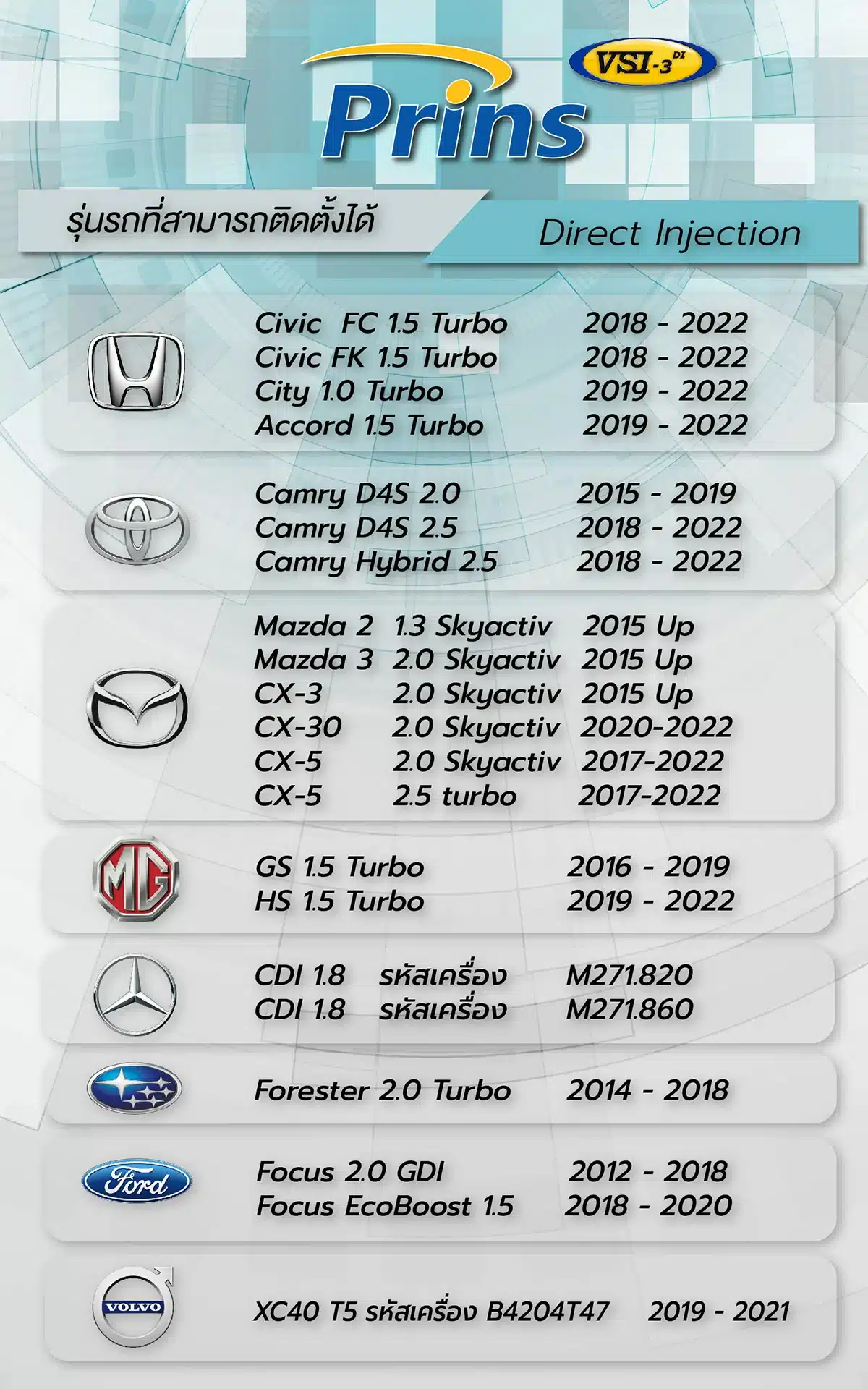 Prins VSI-3 DI ขั้นสุดของเทคโนโลยี ติดแก๊สเครื่องยนต์ DI – D4S – Hybrid