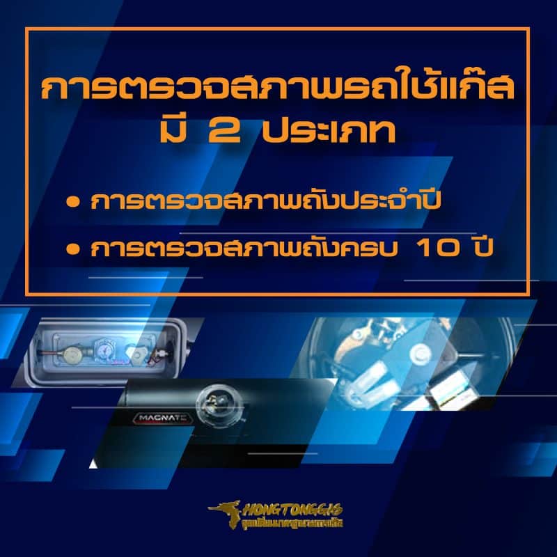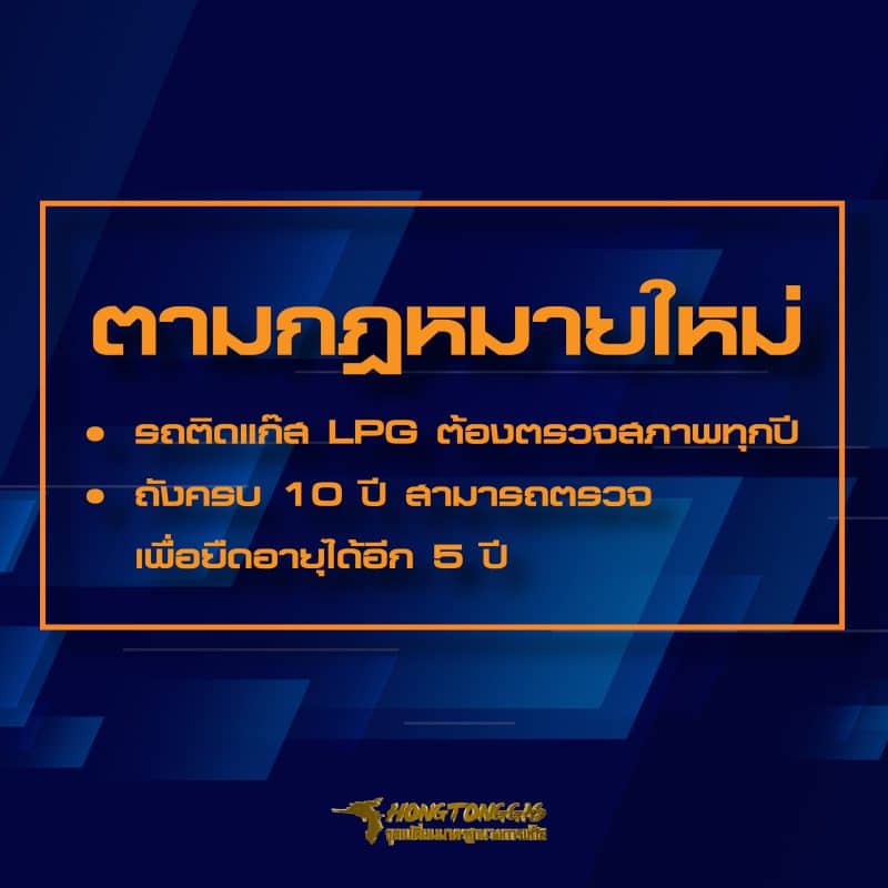 การตรวจสภาพรถติดแก๊ส LPG ไม่ยุ่งยากอย่างที่คิด! มี 2 ประเภท คือ 1.การตรวจสภาพถังประจำปี และ 2.การตรวจสภาพถังครบ 10 ปี ซึ่งตามกฎหมายใหม่ (ประกาศฯ กรมการขนส่งทางบก) กำหนดให้รถติดแก๊ส LPG ต้องตรวจสภาพเป็นประจำทุกปี ส่วนถังแก๊สที่มีอายุการใช้งานครบ 10 ปีแล้ว สามารถเข้ารับการตรวจสภาพ เพื่อยืดอายุถังแก๊สต่อได้อีก 5 ปี