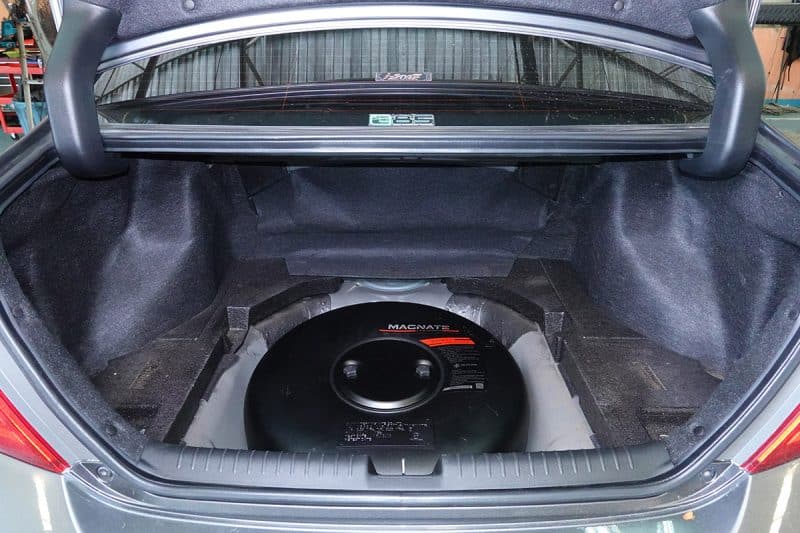 สำหรับ Honda Civic FB 1.8 ติดแก๊ส ในส่วนของถังแก๊สซึ่งจะถูกติดตั้งไว้ที่ฝากระโปรงหลัง หลังจากวัดพื้นที่เรียบร้อยแล้ว ขนาดถังที่เหมาะสมสามารถวางในหลุมวางยางอะไหล่ได้อย่างลงตัวคือ ถังแคปซูลวางบน 58 ลิตร หรือ ถังโดนัทวางบน 42, 54 และ 62 ลิตร การติดตั้งจะมีการรองแผ่นยางกันกระแทกและยึดถังอย่างแน่นหนา เมื่อติดตั้งเสร็จแล้วสามารถปิดฝาครอบยางอะไหล่กลับไปได้อย่างพอดี ไม่เสียพื้นที่ในการวางสัมภาระ
