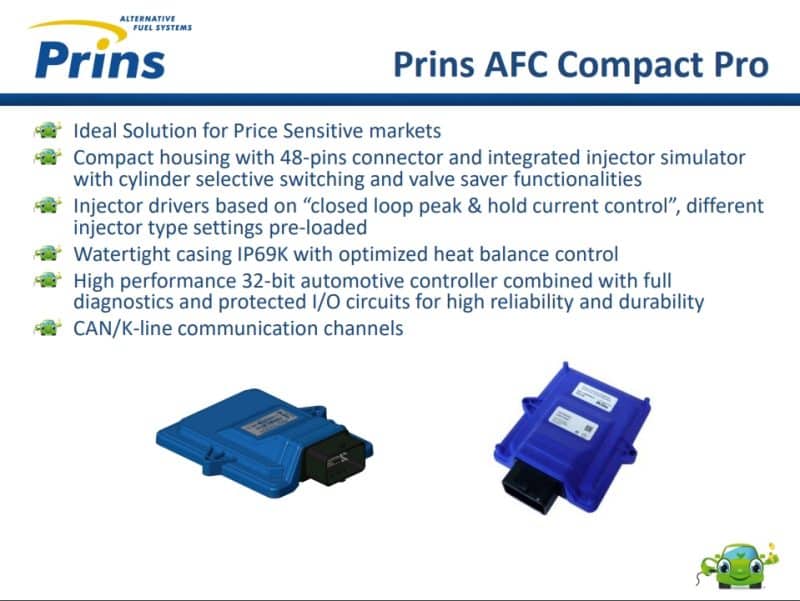 กล่อง ECU Prins รุ่น AFC COMPACT PRO 4D ถูกใช้ในชุดแก๊สเกรดบน อาทิ Prins Silverline และ Prins Technomax หัวใจสำคัญที่ควบคุมการทำงานของระบบอุปกรณ์ติดตั้งแก๊สรถยนต์ LPG ความพิเศษคือใช้เทคโนโลยีขั้นสูง เป็นรุ่นย่อยที่ถูกพัฒนามาจาก Prins VSI-2.0 และ VSI-2.1 โดยยังคงความฉลาดแม่นยำด้วยซอฟต์แวร์ VSI 2.0 พร้อมจัดเต็มฟังก์ชันอัจฉริยะ ที่ช่วยให้การติดตั้งและปรับจูนเป็นเรื่องง่าย ได้ผลลัพธ์คือ “ไฟล์จูน Online” ที่สมบูรณ์แบบเฉพาะรถแต่ละรุ่นเก็บไว้บนระบบ Cloud System ช่วยแก้ไขจุดอ่อน ตอบโจทย์ทุกมิติการใช้รถติดแก๊ส LPG ได้ทั้งความประหยัด สมรรถนะ ที่ดีกว่าเดิม! ขับขี่สมูท ไหลลื่นไม่สะดุด จึงถือว่าเป็นอีกซอฟต์แวร์ระดับเทพสุด ณ ปัจจุบัน สำหรับการติดตั้งแก๊สในระบบเครื่องยนต์หัวฉีดมัลติพอยท์ (MPI) และหัวฉีดธรรมดา (Port Fuel Injection) อีกจุดเปลี่ยนเพื่อจบทุกปัญหา! การใช้งานรถติดแก๊ส…