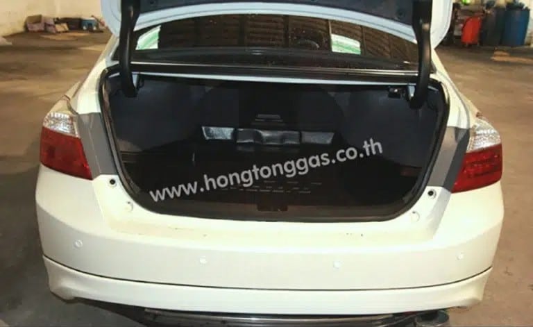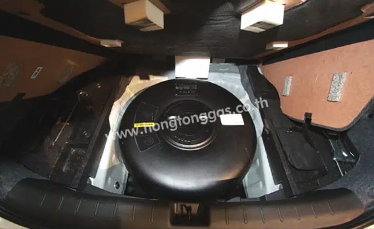 สำหรับ Honda Accord ติดแก๊ส ในส่วนของถังแก๊สซึ่งจะถูกติดตั้งไว้ที่ฝากระโปรงหลัง หลังจากวัดพื้นที่เรียบร้อยแล้ว ขนาดถังที่เหมาะสมสามารถวางในหลุมวางยางอะไหล่ได้อย่างลงตัวคือ ถังแคปซูล วางบน 58 ลิตร / ถังโดนัทวางบน 42 ลิตร / 52 ลิตร / 62 ลิตร การติดตั้งจะมีการรองแผ่นยางกันกระแทกและยึดถังอย่างแน่นหนา เมื่อติดตั้งเสร็จแล้วสามารถปิดฝาครอบยางอะไหล่กลับไปได้อย่างพอดี ไม่เสียพื้นที่ในการวางสัมภาระ