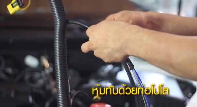 – ที่สำคัญงานติดตั้งในส่วนของการเดินระบบไฟ ทางร้านจะพันสายไฟทุกเส้นรวมเป็นชุดเดียวกันอย่างเรียบร้อยด้วยเทปพันสายไฟ และหุ้มสายไฟด้วยท่อโปโลอีกชั้นหนึ่ง การหุ้มสายไฟด้วยท่อโปโลนอกจากความสวยงามแล้ว ยังเป็นการป้องกันสายไฟไม่ให้เกิดความเสียหายจากการขูดขีดหรือการสั่นสะเทือนด้วย จากนั้นนำเทปพันสายไฟพันทับท่อโปโลอีกครั้ง