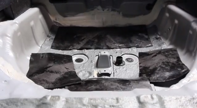 – ติดตั้งแผ่นยางกันกระแทกบริเวณพื้นที่วางยางอะไหล่ ซึ่งจะใช้เป็นพื้นที่ติดตั้งถังแก๊ส