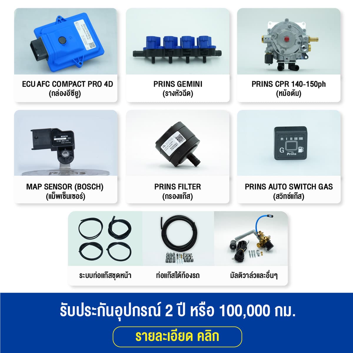 . Prins Technomax รับประกันอุปกรณ์ 2 ปี หรือ 100,000 กม.